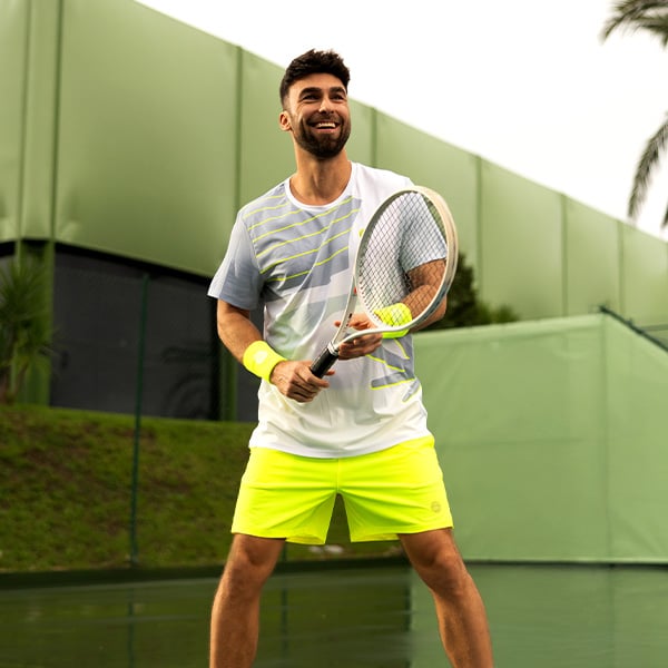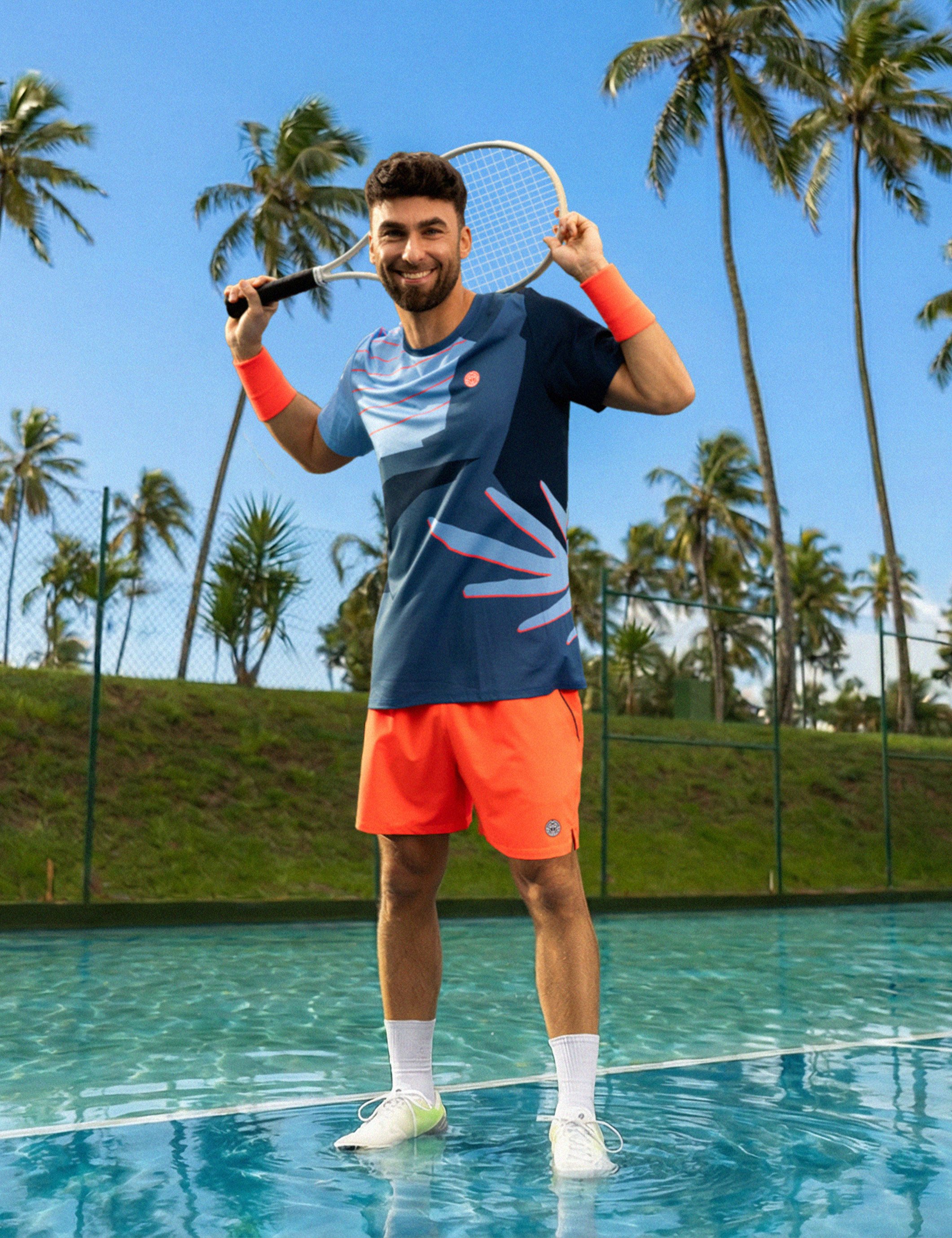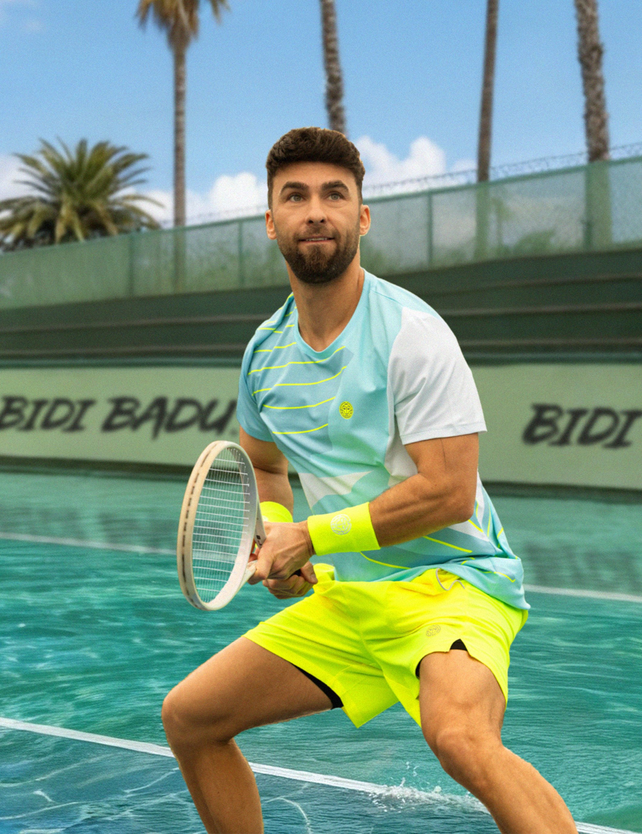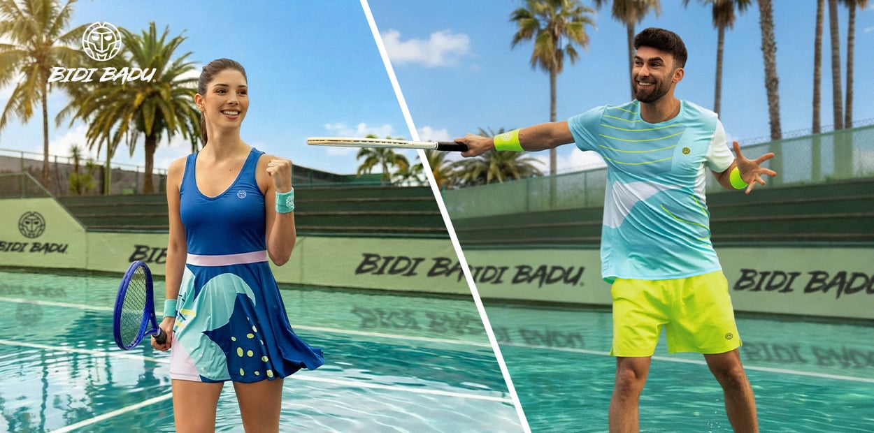 Los materiales orientados al rendimiento garantizan la concentración y la funcionalidad en la pista, mientras que los tonos azules y turquesas brillantes, con contrastes frescos y estampados florales interpretados gráficamente, encarnan la energía y la alegría de jugar, tanto en la pista como fuera de ella.