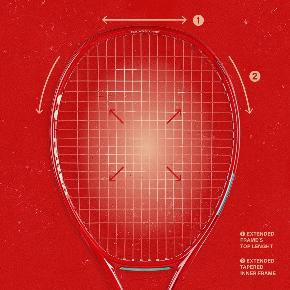 En comparación con un marco redondo convencional, la raqueta ISOMETRIC de forma cuadrada posee un punto dulce* un 7 % más grande. Esto da como resultado una raqueta más tolerante que mejora la jugabilidad.